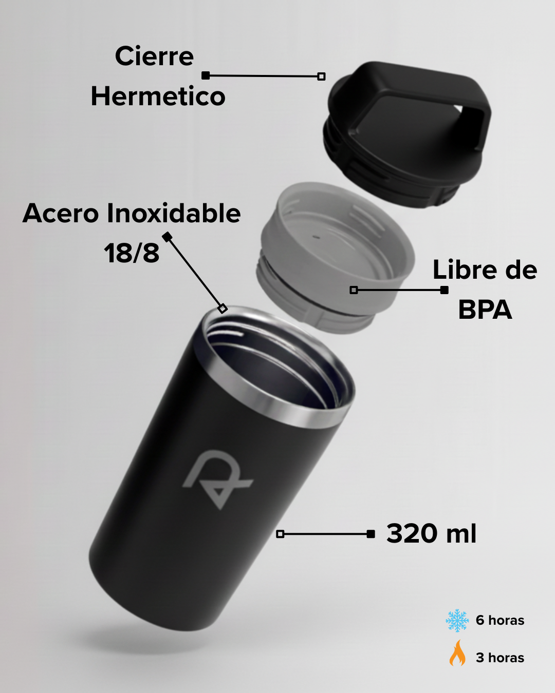 • Tapa libre de BPA con cierre hermético, ideal para evitar derrames y llevarlo en la mochila.